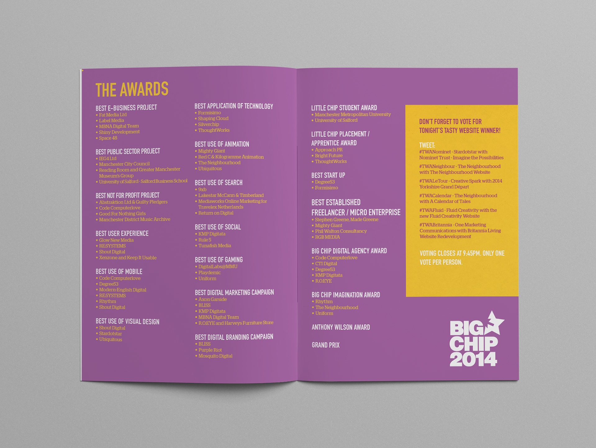 As part of working for 22 Group in Manchester, the brief was to make a brochure for the Big Chip Award 2014 Brochure.